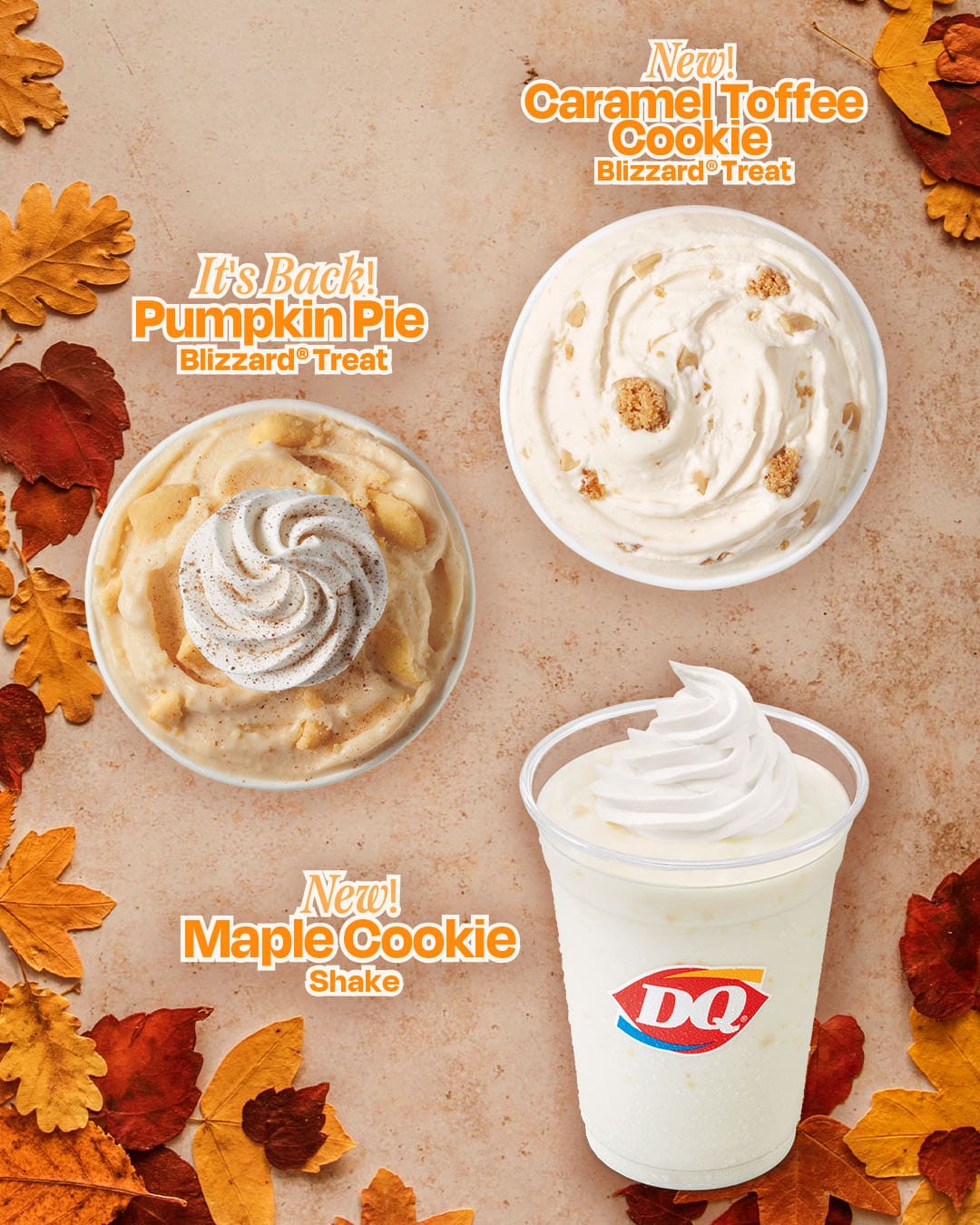 It’s Back! Pumpkin Pie Blizzard Treat: Real pumpkin pie pieces blended with DQ world-famous soft serve to Blizzard® perfection and garnished with whipped topping and nutmeg.