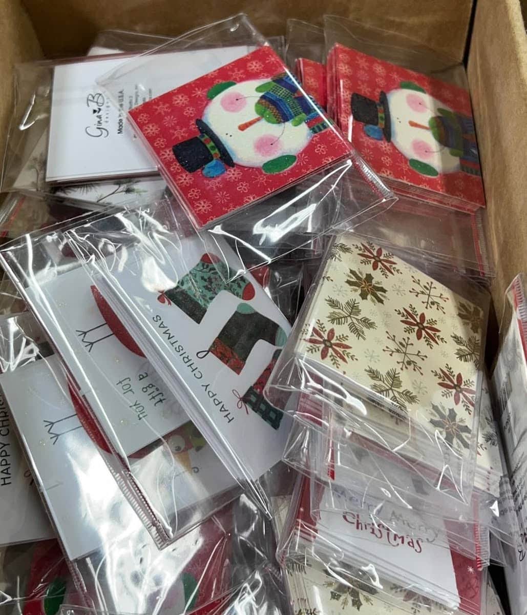 Products in the Warehouse Sale include: greeting cards, note cards, gift enclosures, Christmas/holiday cards, notepads, gift boxed candles and diffusers, mini journals, desk calendars, acrylic desk note holders, desk note refills, holiday gift tags, holiday notepads, holiday money/gift card holders, holiday envelope seals, kids valentines, kids thank you postcards, invitations, valentine’s day and spring seasonal cards, MN tea towels, Swedish dishcloths, MN vinyl stickers and more!
