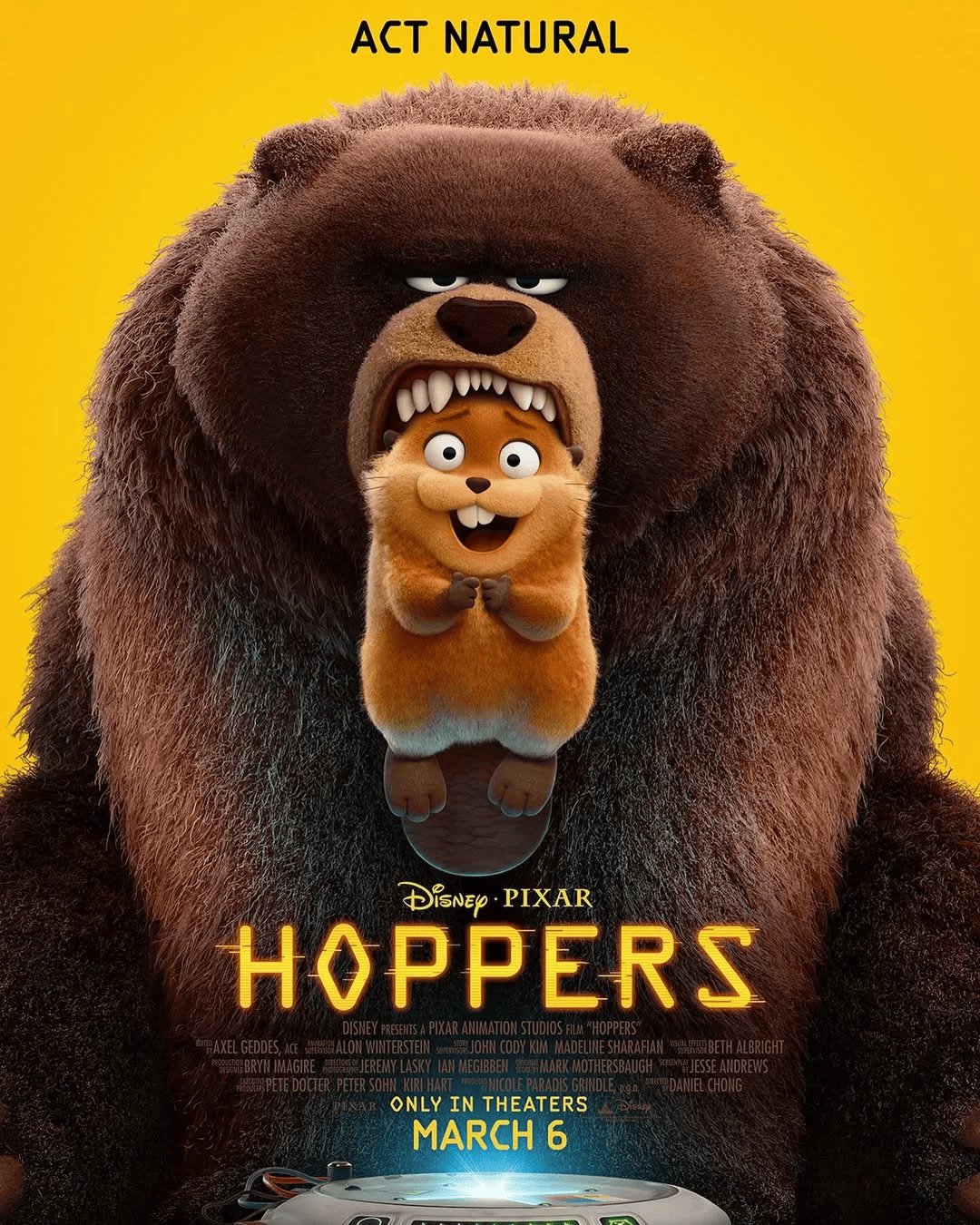 The all-star voice ensemble also features Kathy Najimy, Dave Franco and Meryl Streep. “Hoppers” is directed by Daniel Chong and produced by Nicole Paradis Grindle, with an original score by Mark Mothersbaugh.