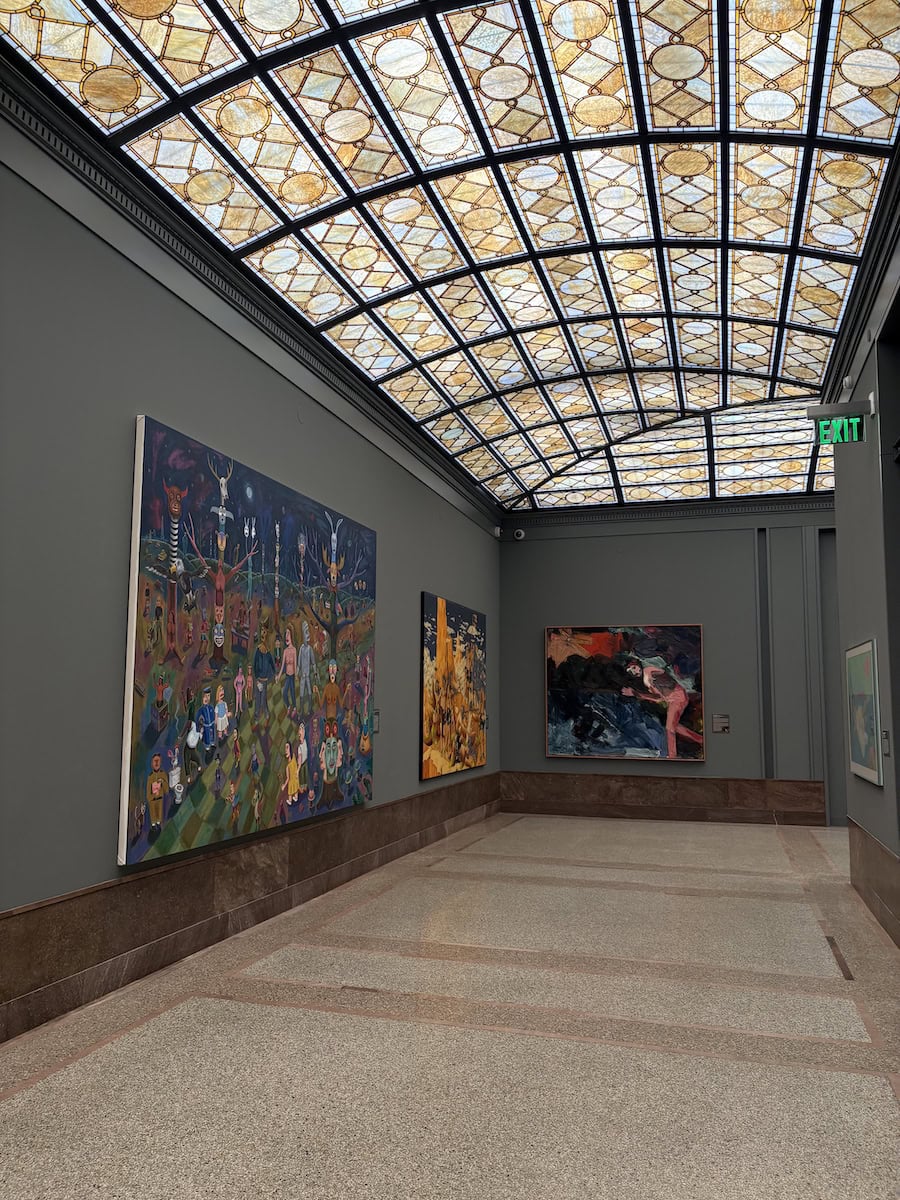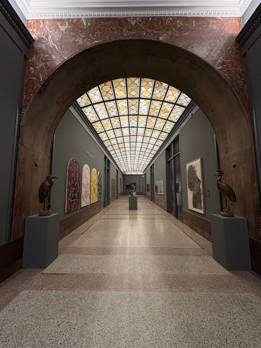 I had a lovely time visiting the museum, I honestly didn’t want to leave– but my on-street parking said otherwise! First of all, this building is an architectural gem. The amazing glass ceiling is a work of art on its own, did you know it was covered up until the museum took over the space two years ago? They took the time to restore every individual art panel and light the glass from above. It is truly a sight to see!