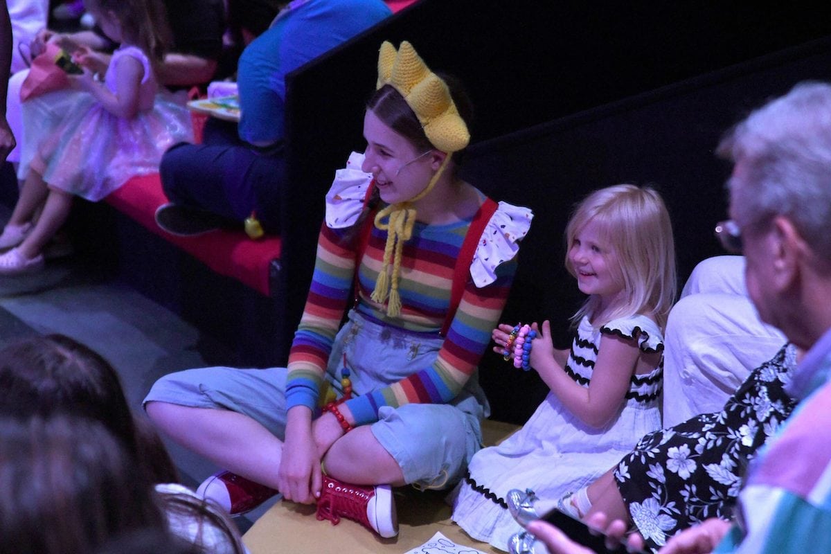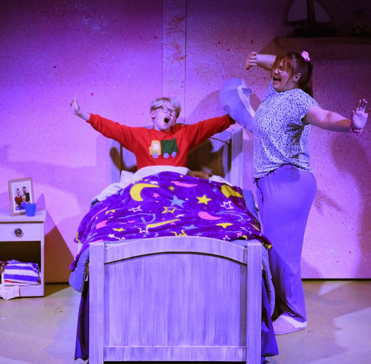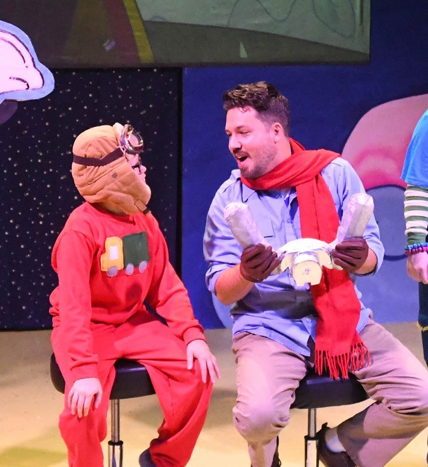 Tell Me Your Dreams is theatre for the very young: ages 0-5 and takes place in the Jaycees Studio Theatre. The open bench seating is perfect for littles and easy for anyone to take breaks as needed! I took my 3 year old daughter to this show (her very first LIVE theatre experience!) and we did indeed need to take a break. The ushers were very welcoming and used to little kids coming and going.