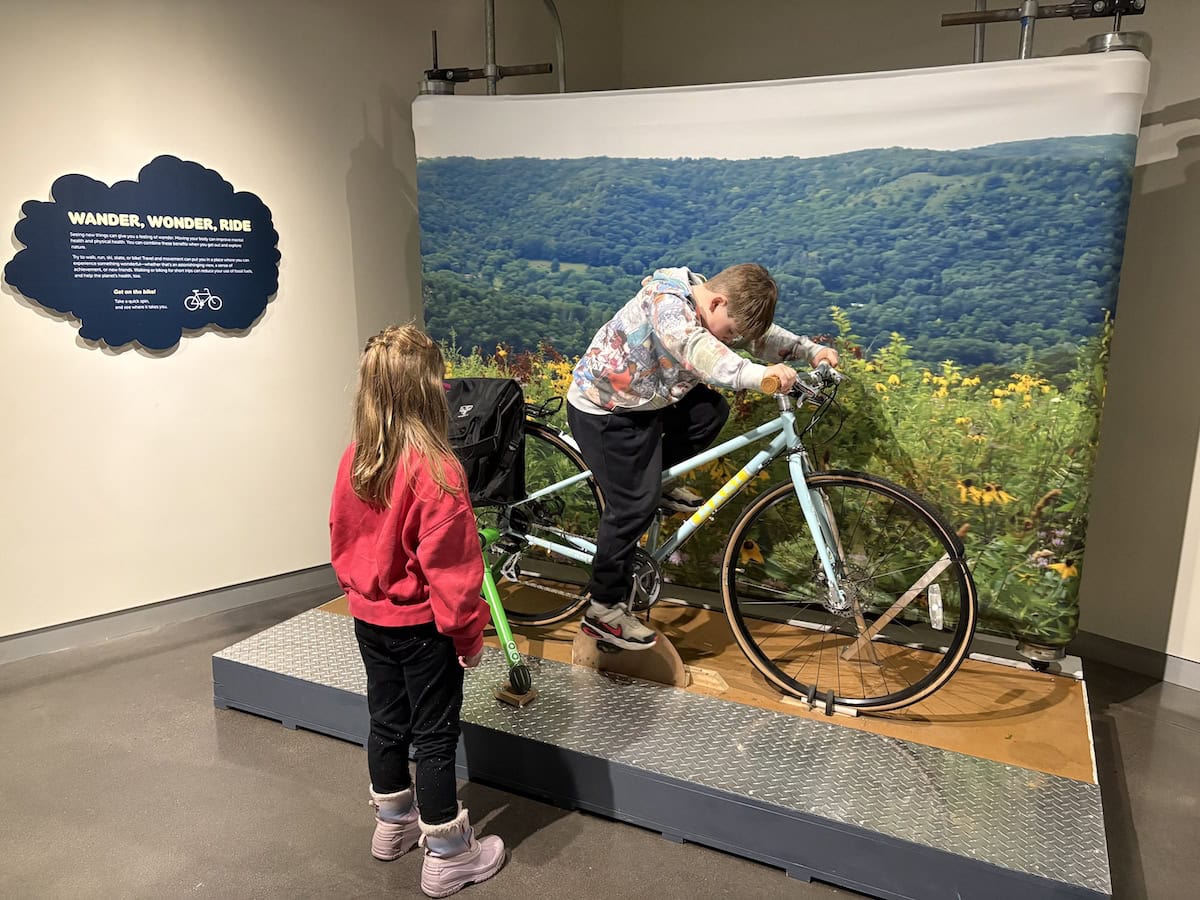 Wonder: Experiences of Nature, Curiosity, and Play is on exhibit now through June 7th, it’s a fun exhibit for all ages, but especially kids! This is an extremely interactive exhibit– there’s a life-size nature diorama that attendees can play with and move around, a ride-on bike was a huge hit with everyone during our visit, the tent and trailer areas were fun to explore and start discussions about how we experience nature.